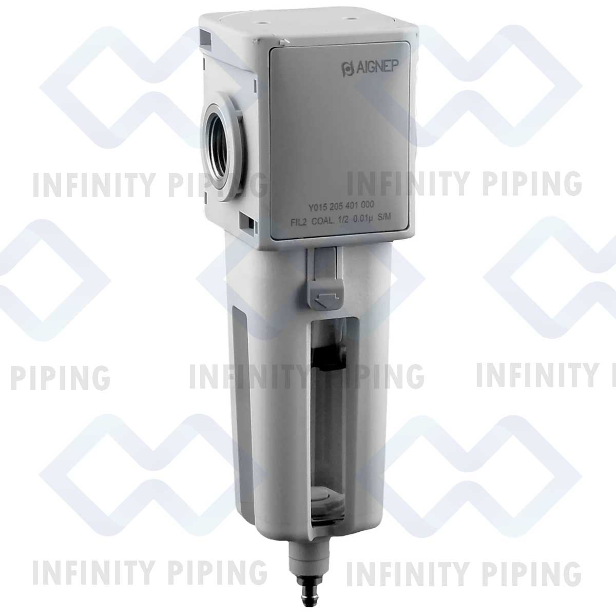 Part of Aignep’s flagship “Evo” line, this unit combines Italian industrial design with rugged performance. It features a modular body that allows it to connect instantly with other Evo components (Regulators, Lubricators) without needing threaded nipples, creating a sleek, leak-free air prep station.